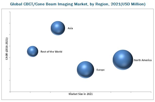 Based on region, the CBCT/cone beam imaging market is segmented into North America, Europe, Asia and Rest of the World (RoW). In 2016, North America is expected to dominate the market, followed by Europe. The dominance of the North American market is due to the rising incidence of dental disorders, increasing expenditure on dental services, high prevalence of ENT disorders, growing number of orthopedic disorders & sports injuries, rising awareness of CBCT systems through conferences and symposia, and presence of a large number of prominent players in this region. On the other hand, Asia is estimated to be the fastest-growing regional segment during the forecast period. Growing awareness of dental healthcare, growth in geriatric population (especially in Japan), increasing prevalence of orthopedic disorders, partnerships/collaborations among key players, growing medical tourism for dental services, improving healthcare infrastructure, and growing disposable incomes in emerging Asian economies (such as China and India) are some of the key factors fuelling the growth of this market.