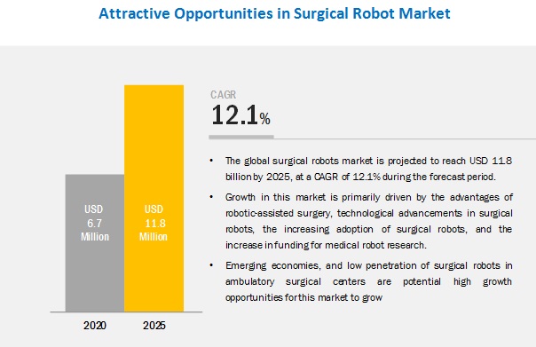 According to the new market research report “Surgical Robots Market by Product & Service (Instruments & Accessories, Systems, Service), Application (Urological Surgery, Gynecological Surgery, Orthopedic Surgery), End User (Hospitals, Ambulatory Surgery Center) – Analysis and Global Forecasts to 2026″, published by MarketsandMarkets™, the global market is projected to reach USD 14.4 billion by 2026 from an estimated USD 6.4 billion in 2021, at a CAGR of 17.6%.