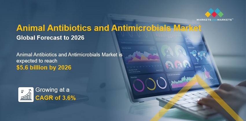 The global animal antimicrobials and antibiotics market is projected to reach USD 5.6 billion by 2026 from USD 4.7 billion in 2021, at a CAGR of 3.6% from 2021 to 2026.