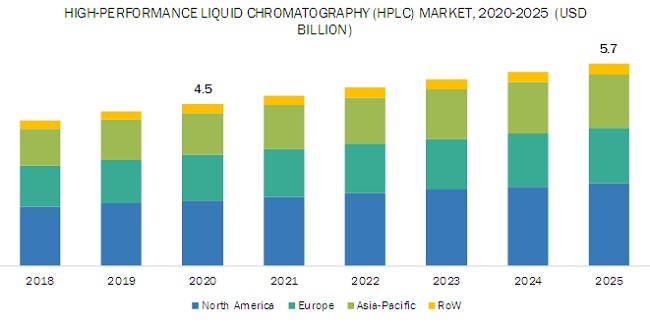 The global high-performance liquid chromatography market size is projected to reach USD 5.7 billion by 2025 from USD 4.5 billion in 2020, at a CAGR of 4.6% during the forecast period.