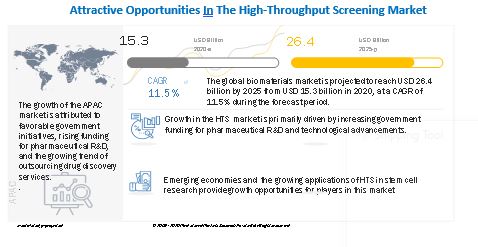 The global High-Throughput Screening (HTS) Market size is projected to reach USD 26.4 billion by 2025 from USD 15.3 billion in 2020, at a CAGR of 11.5% during the forecast period.