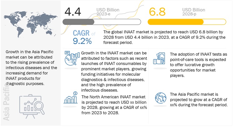 The report Isothermal Nucleic Acid Amplification Technology Market is projected to reach USD 6.8 billion by 2028 from USD 4.4 billion in 2023, at a CAGR of 9.2% during the forecast period.