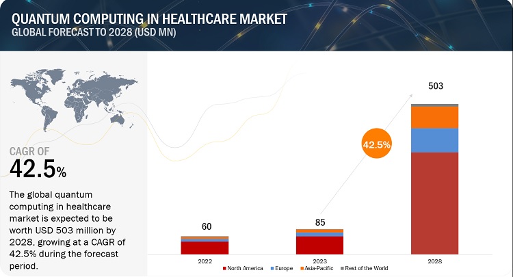 The report Quantum Computing in Healthcare Market is projected to reach USD 503 million by 2028 from USD 85 million in 2023, at a high CAGR of 42.5% during the forecast period.
