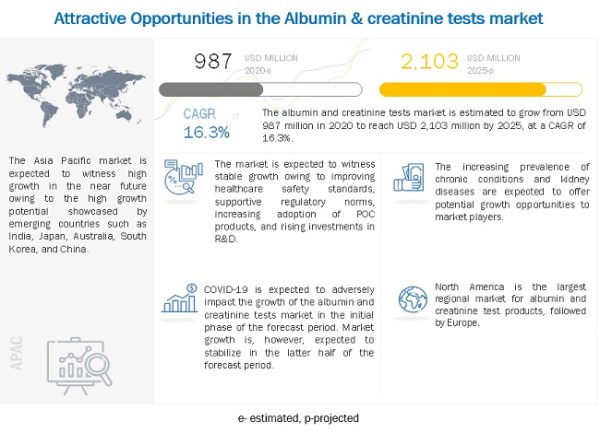 The growth of the global albumin & creatinine tests market is driven by factors such as the growing prevalence of kidney disorders, the rising adoption of POC diagnostics, and the increasing prevalence of chronic conditions. The report Albumin & Creatinine Tests Market is projected to reach USD 2,103 million by 2025 from USD 987 million in... Continue Reading →